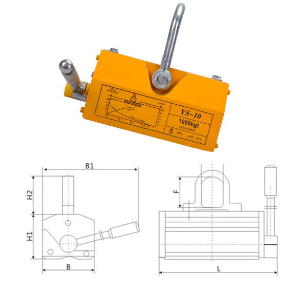 产品参数: 永磁起重器由高性能磁性材料组成强磁系统,通过手柄的转动,改变强磁系统磁力达到对工件的吸持和释放。永磁起重器上部有供提起物件的吊环,下有V形槽...