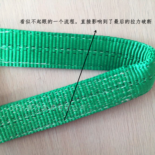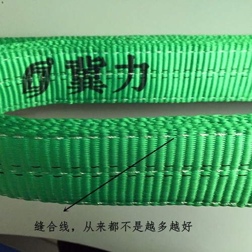 当机器在缝合的时候,针与针的长度控制在10公分10针,这时如果1吨的吊装带重叠部分纵向6-7列可以了, 这时我们一定会选择6列而不是7列。因为通过数据测试,我们发现6列比7列拉力要大,更不容易断裂。
