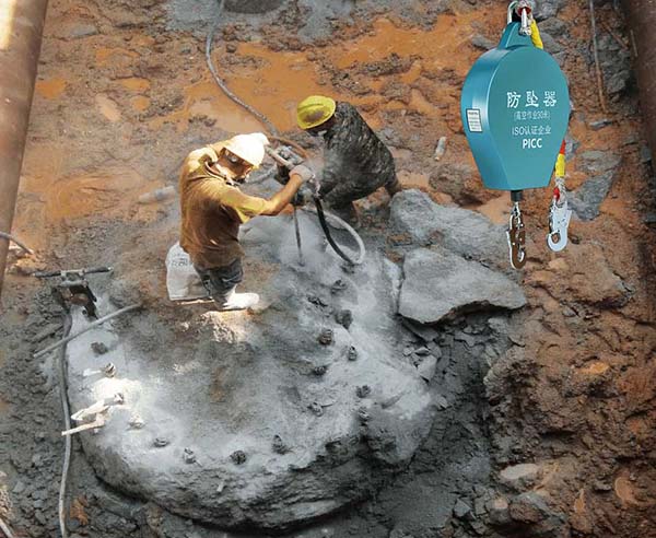 产品分类 高空钻孔灌注桩作业防坠器保驾护航防坠器厂家河北冀力索具——保定某建筑公司客户在进行高空钻孔灌注桩作业时,采纳了我厂家技术人员的建议,在进行钻孔灌注桩时工作人员随身佩戴一款高空作业防坠器,用于防坠落保护。 其原因是这样的,在钻孔时如果泥浆或其他护壁措施不当,容易造成坍塌,工作人员随时会有高空坠落的危险,故,需要一种可以防高空坠落又不阻碍作业的防坠装置。 使用时,客户将防坠器悬挂于建筑支架的横杆上,其下端连接于作业人员所穿的防护吊装带的锁扣之上。一旦出现坍塌情况,可对作业人员实施坠落保护。 这种防坠器工作原理是根据个人坠落加速度的变化来实现快速响应式制动锁止,以确保作业人员免于高空坠落伤害。根据钻孔灌注桩的垂直高度,我厂技术人员建议客户使用有效距离为7米的高空防坠器,作为钻孔灌注桩作业的高空防坠保护措施。