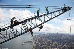 高空作业人员悬挂在300米吊车上作业 上图照片是纽约世贸高楼,吊车将吊臂从93层楼高的地方向外伸出,数名工人勇敢的在这根吊臂上作业,小编看了不禁竖起了大拇指,内心佩服这些辛勤...